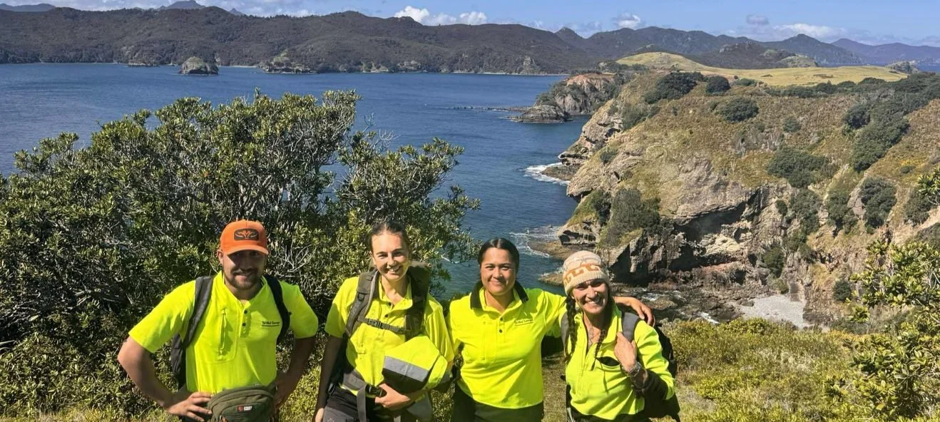 Recently the DOC Senior Leadership Team visited Aotea to see the mahi in action and they were impressed by the skill and dedication on display. The team’s efforts are already paying off. They have recorded their highest weekly catch yet of 15 feral cats including one caught using silver vine sticks, a true demonstration of the creativity and expertise of our field crew.